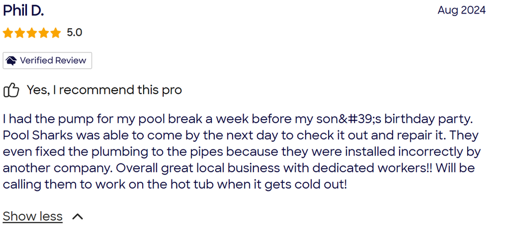 Pool Sharks LLC is your go-to pool repair service. With years of experience, our team of professionals is dedicated to providing top-notch pool maintenance and repair services. We specialize in all pool and spa equipment. Weather you just need a diagnosis or a heater replaced Trust Pool Sharks LLC to make it happen.